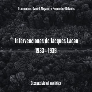 Agradecemos a Daniel Alejandro Fernández Bolaños por compartir su trabajo de traducción a textos de Lacan correspondientes a los años 1933 a 1939, podrá usted visitar su página y su trabajo siguiendo el link: https://sites.google.com/view/notodolacan/bienvenida